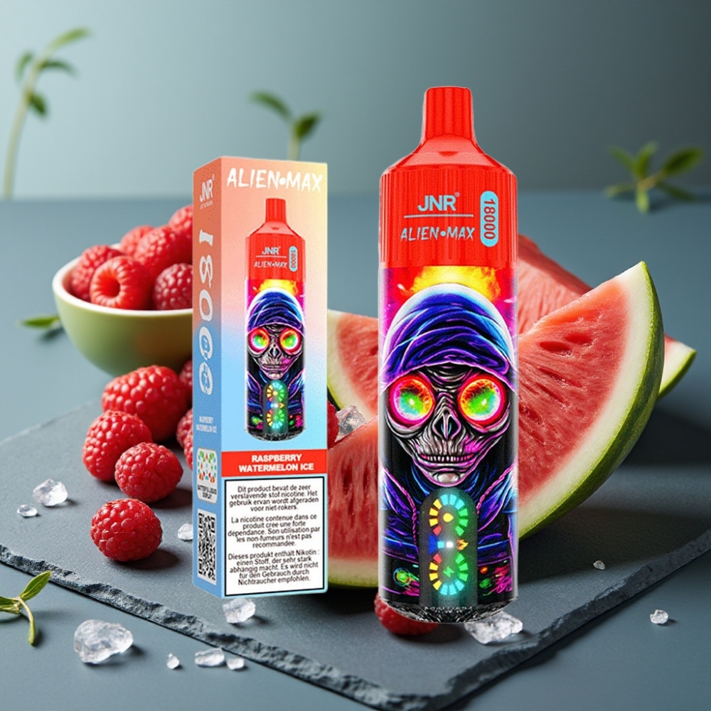JNR Alien Max 18000 Puffs Disposable Vape Framboos Watermeloen Ijs met Smart LED Display, Dual Mesh Coil & 28ml E-liquid