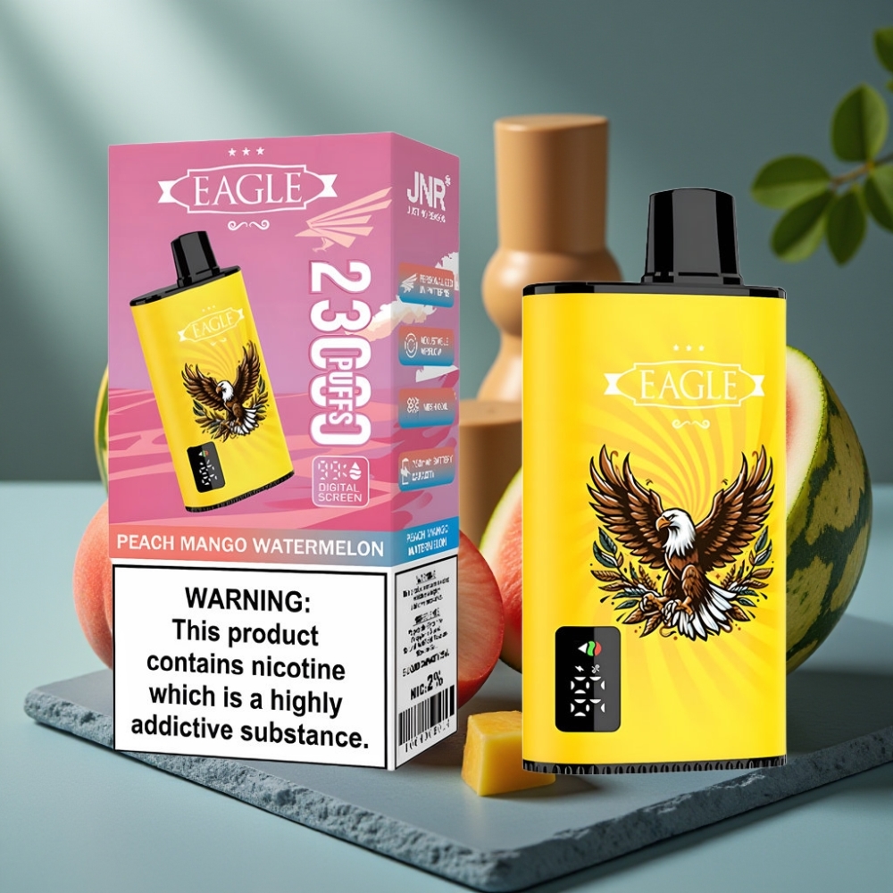 JNR EAGLE Smart 23000 Puffs Disposable Vape Perzik Mango Watermelon Met Digitaal Scherm, 1.0ohm Mesh Coil & Type-C Opladen