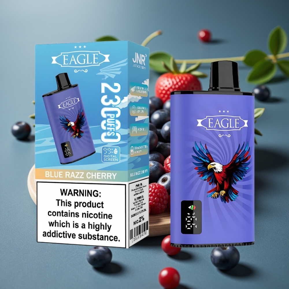 JNR EAGLE Smart 23000 Puffs Wegwerp Vape Blauwe Framboos Kers met Digitaal Scherm, 1.0ohm Mesh Coil, Instelbare Luchtstroom