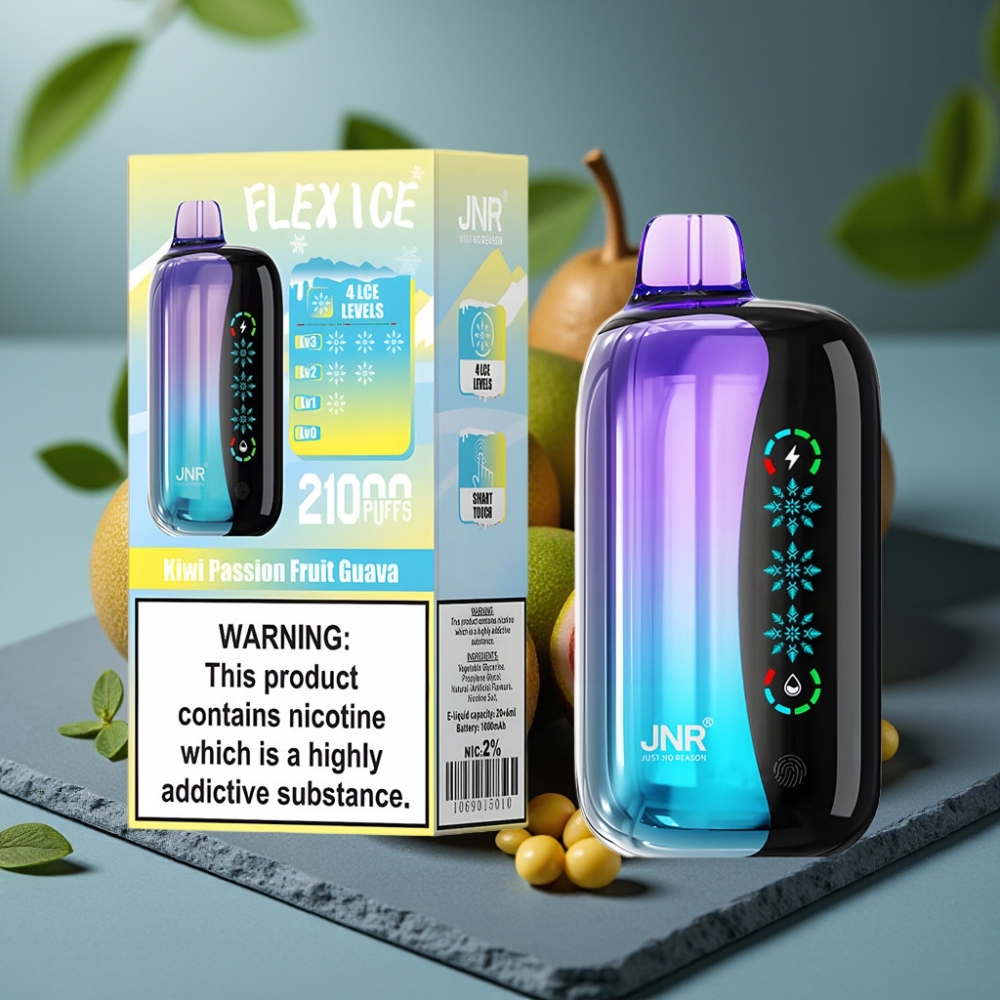 JNR Flex Ice 21000 Puffs Disposable Vape Kiwi Passievrucht Guava – Aanpasbare IJs, 26ml, Aanpasbare Luchtstroom, Touchscreen, Type-C