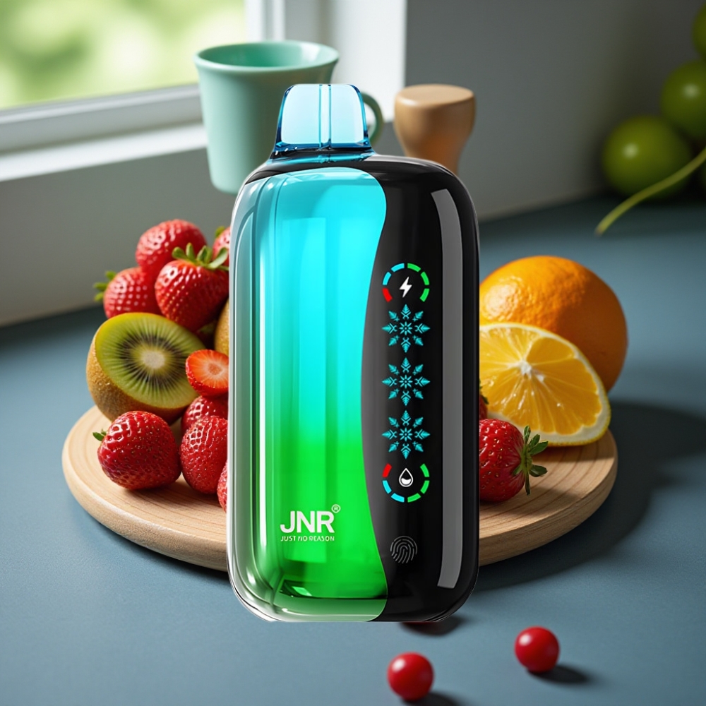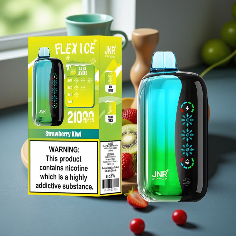 JNR Flex Ice 21000 Puffs Wegwerp Vape Aardbei Kiwi – IJS Instelbaar, 26ml, Type-C Opladen, 0-5% Nicotine