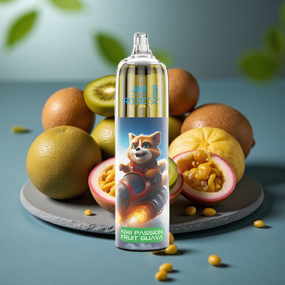 JNR Rocket-X 12400 Puffs Disposable Vape Kiwi Passievrucht Guava met Aanpasbare Luchtstroom, RGB-verlichting, 1.2ohm Mesh Coil, 850mAh, 25ml, Type-C