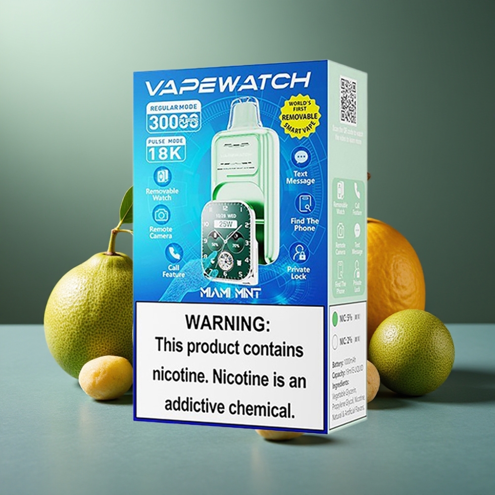 JNR VapeWatch 30.000 Puffs Wegwerp Vape Miami Munt – 19mL, 5%, Dual Mesh Coil, Type-C